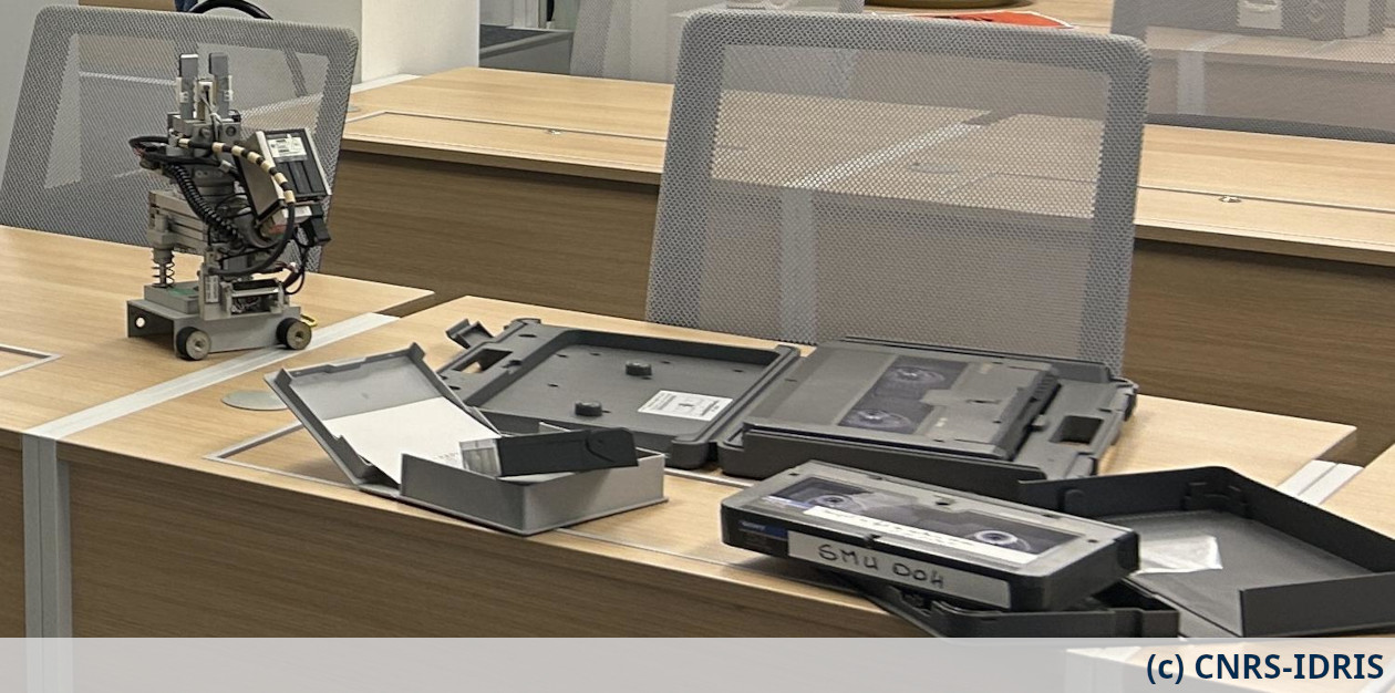 La visite a commencé par celle du musée monté pour l'occasion, où étaient exposés des éléments de technologies informatiques de calcul et de stockage conservés depuis les débuts du centre.