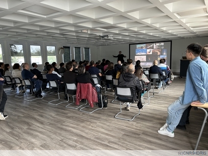 Les participants ont ensuite pu rencontrer dans son environnement le supercalculateur Jean Zay hébergé à l'IDRIS et mesurer l'importance des infrastructures nécessaires à son bon fonctionnement.