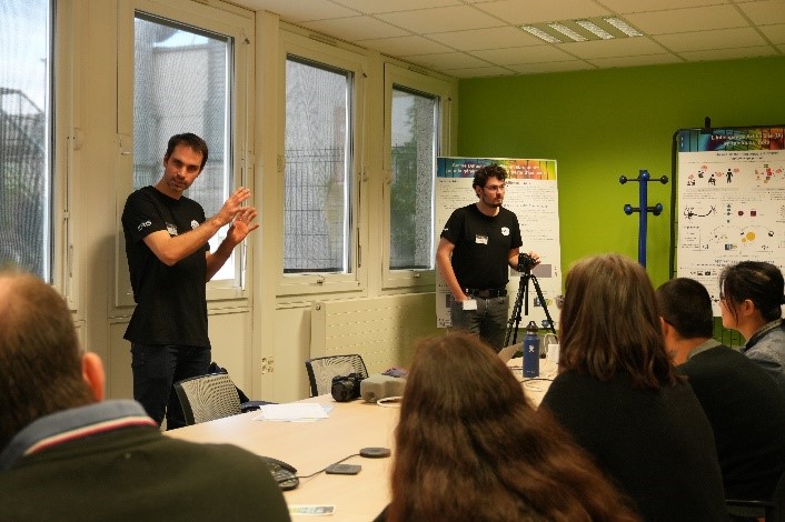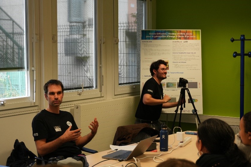 - Démonstration de l’IA avec la mise en scène de photos des participants sur différents thèmes, intégrées dans l’univers visuel de Jean Zay.