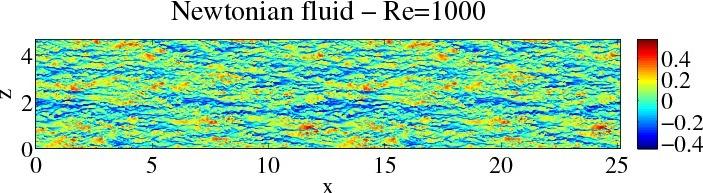 La première étape a consisté à calculer les écoulements turbulents newtoniens de référence pour ces 4 nombres de Reynolds. Les écoulements viscoélastiques correspondants pour les 3 nombres de Reynolds les plus faibles ont également été simulés au cours de l'année 2009. Le cas viscoélastique Re? =1000 est en cours de convergence.